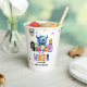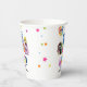Tazas de papel divertidas y coloridas para la fiesta de cumpleaños del monstruo. ¡Nuestro pequeño monstruo cumple (añadir edad)! El diseño presenta un grupo de monstruos divertidos, adorables y coloridos en acuarela, confeti de estrellas, texto de arcoíris en negrita y una plantilla moderna de fiesta de cumpleaños fácil de personalizar.