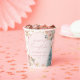 ¡Estas son nuestras pequeñas copas de papel de cumpleaños de invierno rosado con copas de nieve!