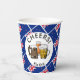 Patriótico NUEVA ZELANDIA de papel taza que muestra un patrón de baldosas de la bandera de NUEVA ZELANDIA en el fondo, con tres cervezas y QUESOS! 'Kia Ora' (Maorí) también está escrito en la parte inferior. Ideal para reuniones sociales en Kiwi, fiestas privados, celebraciones públicas, festivales de cerveza, etc. Los artículos coincidentes están disponibles en la colección NEW ZEALAND de Berean Designs.