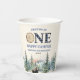 Este es un Camper azul Feliz Oso Forestal de Woodland Primer Cumpleaños Fiesta Cups de Papel! bosque de oso animal animales búfalo verde impresión de búfalo invierno Noviembre Árboles fríos leñadores osos pardos Azul marrón