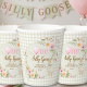 Add an adorable touch to your celebration with these One Silly Goose Birthday Paper Cups! Perfect for a baby girl first birthday party, these charming cups feature a sweet watercolor goose illustration, soft pink balloon, delicate floral accents, and a classic gingham background. The soft pastel colors create a whimsical and elegant look that pairs beautifully with a “One Silly Goose” themed birthday party. These cups are ideal for serving juice, lemonade, punch, or other party drinks while completing your party table décor. They also coordinate perfectly with matching plates, napkins, invitations, and party favors to create a cohesive celebration.