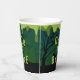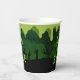 Estas divertidas tazas de papel zombi de Halloween presentan goteos de humo verde y una escena de cementerio aterradora. La tipografía es divertida pero moderna. El saludo al frente dice "Oze and booze". ¡Este es el diseño perfecto para una fiesta de adultos divertidos!
