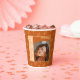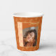 Elevate your graduation celebration with elegant orange photo paper cups in warm orange, soft peach, and cream tones. The design features your graduate's photo in a sophisticated arched frame alongside their name, school, and class year. Thoughtful details create an elevated guest experience throughout your party.