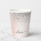 Vasos De Papel Oro Rosa - Monograma de Purpurina Plateada Rosa Cl