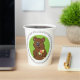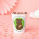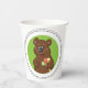 Un oso pardo sostiene un helado con múltiples cucharas. Este diseño parece realmente efectivo en estas tazas de papel