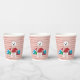 Tazas de papel rosadas con rayas rojas y un oso polar personalizado que lleva bolsas de compras. No se ha agregado texto. Perfecto para el fiesta de sus Navidades. Añade una tapa si lo deseas. Busque nuestras placas de papel y servilletas de papel en la misma colección. © ArianeC Ilustraciones-Todos los derechos reservados