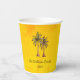 Tropical Bright Gold baña tazas de papel fiesta, con diseño de ilustracion de palmeras y letras de personalizable. Un gran plus para su fiesta de picnic con tema de playa.