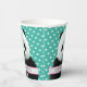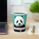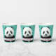 Cute panda oso con copas de papel de feliz cumpleaños con un fondo con motivos de bonito. Personalizar también el color de fondo para hacerlo propio.