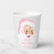 Crear suministros para fiestas personalizados perfectos para fiestas de vacaciones o reuniones de Navidades. Estas tazas de papel tienen un ilustracion retro de Santa Claus usando un sombrero de Santa Claus rosa puesto contra un fondo gris suave y están listos para ser personalizados con tu propio mensaje. El gráfico y el texto aparecen a ambos lados del vaso.