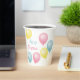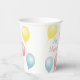 Fiestas de papel tazas con coloridos globos fiestas pastel con los saludos, Feliz Cumpleaños y el nombre de la persona que se homenajea.