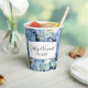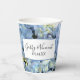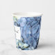 Personaliza estos bonitos Vasos de papel para boda con flores de Hortensia Azul para tu recepción de boda de verano informal pero elegante o fiesta de jardín de despedida de soltera. Estos vasos desechables informales pero elegantes presentan una fotografía floral de cerca de las delicadas flores de hortensias azules.