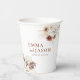 Vasos de papel floral boho en un diseño boho, con flores de acuarela, pampas y tonos terrosos.