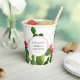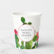 Este diseño de vaso de papel para despedida de soltera elegante presenta hermosas ilustraciones de acuarela de cactus en tonos rosados y verdes con espacio para personalizar el nombre y la fecha. Este diseño también sería una excelente opción para una boda rústica, baby shower, fiesta de cumpleaños... ¡tantas posibilidades!