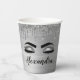 Vaso de fiesta de cumpleaños con monograma elegante de pestañas y ojos glamurosos con brillo y destellos plateados para boda, ducha de novia o despedida de soltera. Este vaso de fiesta de cumpleaños se puede personalizar para incluir su primer nombre. Por favor, póngase en contacto con el diseñador para obtener artículos personalizados coincidentes.
