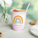 Esta adorable copa de papel de cumpleaños es perfecta para agregar un toque personal a la celebración de cumpleaños de un chica. Este diseño de boho presenta un bonito arco iris en naranja, amarillo, rosa y verde azulado, acentuado por un corazón rosado.
