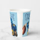 Graduado escrito en alta tipografía azul sobre tu foto de retrato senior hace una simple taza de papel de graduación para la fiesta de graduación de un jugador de fútbol en un equipo deportivo. Personalizar con su nombre y clase secundaria o universitaria de 2025.