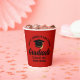 Esta moderna copa de papel para la fiesta de graduación de personalizados rojos y negros presenta tipografía de tu nombre de instituto o universidad para la clase de 2025. Personalizar con tu año de graduación bajo la moda manuscrita y gorra de grado para una gran decoración personalizada de graduados.