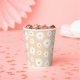 Añade un toque final a la fiesta de cumpleaños de tu pequeña con estas tazas de papel, con un patrón de margaritas en un fondo amarillo.