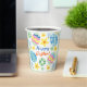 Este diseño presenta un patrón floral de huevo de Pascua con texto moderno.