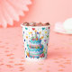 Una Colorida Copa De Fiesta De Papel Para Niños Diseñada Con Globos Coloridos Y Pastel De Cumpleaños