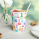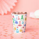 Cupas de papel con un patrón divertido y colorido. Los investigadores científicos vivirán con vasos y frascos de diferentes formas y tamaños en colores alegres y brillantes.