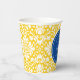 Vasos De Papel Patrón de damasco femenino chic azul y amarillo