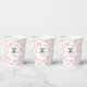 Estas adorables tazas de papel cuentan con una vaca dulce con una flor en la cabeza y un juguetón suave de vaca rosa suave.