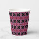 Este vaso de papel presenta un hermoso patrón fractal con un signo de porcentaje negro en un fondo abstracto rojo, rosa y morado.