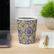 Vasos De Papel Patrón mediterráneo azul Flores amarillas