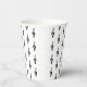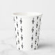Taza de papel de símbolo musical con un diseño de patrón de trípode negro sobre un fondo blanco. Ideal para organizar recepciones después de conciertos y recitales.