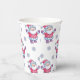Estas lindas tazas de fiesta de papel tienen un patrón repetido de Santa Claus de estilo nórdico o escandinavo y copos de nieve azules. Las imágenes se colocan sobre un fondo blanco. El texto de su personalizado es en color rojo y azul en un cartel circular. ¡Festividad para la temporada de Navidades!