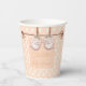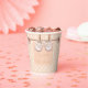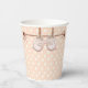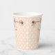 Peach Bow tema de la ducha de bebé con tipografía linda y zapatos de bebé en un fondo de polka-punto. Centro de insignias cuadradas.