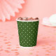 Estas tazas de papel verde con pequeñas manchas blancas distribuidas uniformemente son las copas perfectas para entretenerse. Al ser desechables, simplifican inmensamente la limpieza, mientras que el diseño polka-dot es único y apropiado tanto para ocasiones informales como formales.