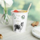 Este diseño presenta un bello dibujo de un perro collie con un estilo clásico de arte en línea blanca y negra, simbolizando la lealtad. La frase "Sin perros, sin lealtad en la vida" está escrita en un elegante tipo de letra tipo guión, enfatizando la importancia de los perros para llevar lealtad a nuestras vidas. Encima del perro, un contorno de hueso verde y una huella de pata verde añaden un toque juguetón, de temática mascota. El estilo general es limpio y minimalista, con tonos verde tierra en el hueso, la huella de la pata y el texto que aportan un toque cálido al diseño. Esta sería una elección ideal para los amantes del perro en Zazzle, especialmente para artículos como posters, camisetas, tazas u otros productos que celebran a los mascotas y el vínculo de lealtad que representan.