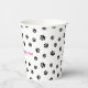 Celebra tu cumpleaños de mascotas con estas lindas tazas de fiesta con estampado de tela de animal negro con las palabras "Feliz cumpleaños" y tu nombre personalizado. Puede cambiar el texto rosado a su color favorito.