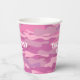 Cubos de papel de personalizado de camuflaje de camuflaje del ejército rosado. Suministros de fiesta desechables con un patrón gris. Impresión a dos caras. Diversión por cumpleaños, barbacoa, boda militar, irse fiesta y más. Ideal para el café y otras bebidas. También disponible en verde.