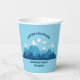 Copas de papel de montaña azules personalizadas para su alojamiento de esquí o la fiesta de reunión familiar de montaña de Colorado para personas que viajan para esquiar y vacaciones de invierno. Este diseño fresco y personalizado cuenta con un bonito dibujo de montañas nevadas y un paisaje azul. Un gran paisaje natural para una familia que ama al aire libre por su expedición natural. Ideal para promocionar su restaurante o su tienda de viajes.