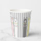El diseño de los productos incluye un ilustracion de llamas retro y coloridas. Este adorable diseño animal con rayas blancas hace unas tazas de papel únicas y modernas con texto personalizado y color de fondo.