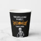 La copa anual de papel de la familia personalizado Guay Halloween party party que incluye un escepticismo tremendo colgando sobre un espeluznante naranja y texto negro y un impresionante Jack O Lantern. Personalizar estas tazas con tu gran información de bash para todos tus invitados.