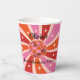 Se trata de una hermosa copa de papel personalizado para una fiesta retro de soltera con bola de disco en medio de la retro sunburst en rosa, naranja y rojo con estrellas retro. Puede cambiar el nombre y las palabras en el botón puede usar el botón personalizar.