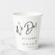 These custom engagement party cups feature bold script with your names and date in clean black on white. Designed for modern minimalist celebrations, they pair beautifully with champagne bars and neutral party decor. Perfect for contemporary couples planning a relaxed but elevated gathering.