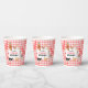 A hand drawn cute petting zoo party animals design featuring illustrations of a goat, goose, hamster, llama, pig, baby chick, cow and rabbit . A beautiful petting zoo themed design ideal for kids petting zoo themed birthday parties. Customize this cute petting zoo animals birthday paper cup and make it your own!