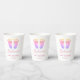 Estas lindas tazas de papel de Baby Shower están decoradas con tipografía rosa y pies de bebé de color arcoiris acuático. El texto es personalizable. Porque creamos nuestra obra de arte no encontrarás esta imagen exacta de otros diseñadores. Acuarela original © Michele Davies.