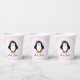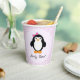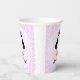 Party Time! Pingüino chica personalizado con tazas de papel de fondo floral rosa.