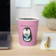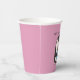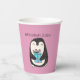 Estas tazas personalizadas de fiesta de papel son perfectas para fiestas de cumpleaños y fiestas Navidades con su lindo ilustracion de un pingüino sosteniendo un regalo envuelto contra un fondo rosado. Utilice el campo de plantilla de relleno en blanco para personalizar fácilmente estos suministros de fiesta con su propio nombre o mensaje.