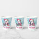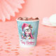 Estas tazas de papel de Navidades rosas y nevadas azules con un pingüino lindo, un muñeco de nieve diminuto y vegetación festiva presentan un dicho de Feliz Navidad y una plantilla para que tu nombre de familia las personalize para el fiesta de Navidad.
