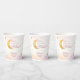 Estas tazas de papel de fiesta de "We're Over the Moon" (Estamos sobre la luna) con el tema de la ducha para bebés tienen una impresionante luna de oro y estrellas con un fondo de nube rosa pastel y blanco. Personaliza con el nombre y la fecha de ducha. Para ver las invitaciones a la ducha de bebé chica y los decorados fiestas, por favor vea nuestra colección en esta página.