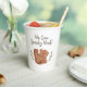 Cute oso tema del oso bebé taza de papel para la ducha con ilustracion de oso rodando por la espalda. El texto dice: "¡podemos esperar!"