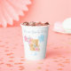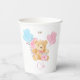Podemos esperar con ansiedad la Copa de Fiestas de Revelación de Género Cuta y moderna y de moda revelar la taza de fiesta con un ilustracion acuarela de un oso de peluche con acuarela de globos rosados y azules y corbata de arco El texto dice "Casi podemos esperar... ¿Él o ella?" Perfecto para un fiesta de revelación de sexo