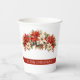 Poinsettias Feliz Navidad en la taza de papel blanco. Un arco de poinsettias acuarelas, bayas y verdor son elementos de diseño con el texto del personalizable, Feliz Navidad a ambos lados. Vea nuestra colección de Navidades con el diseño de The Poinsettia y cinta para una mirada fácil y coherente para su temporada de vacaciones y evento.